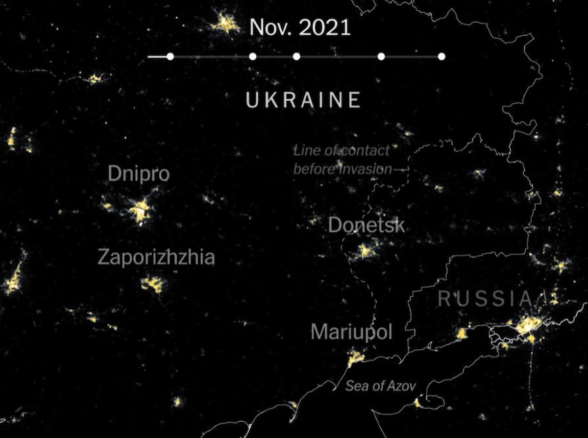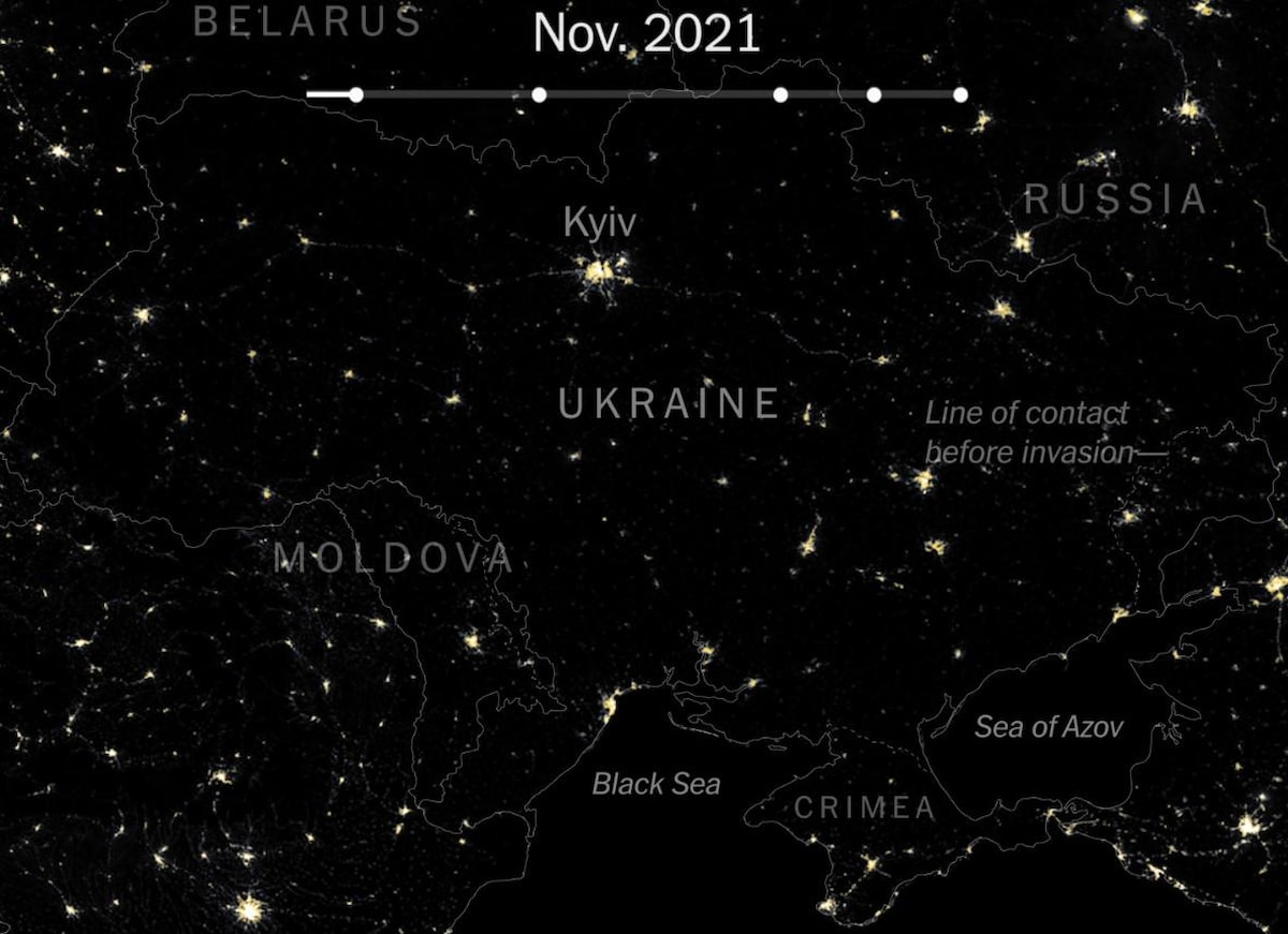 Uydunun Ukrayna genelinde titreşen şehir ışıklarına ilişkin görüntüleri, insani felaketin büyüklüğünü gösteriyor.