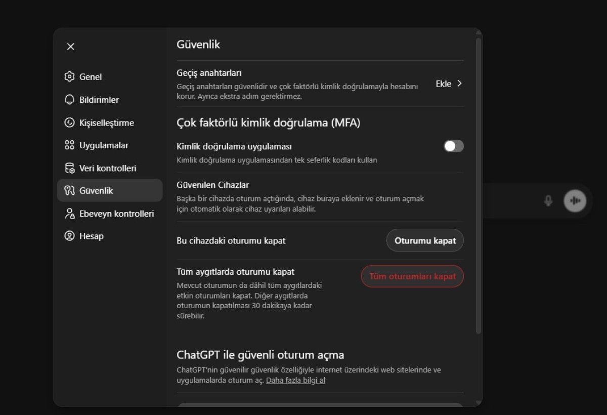 Ayarlar menüsündeki Veri Kontrolleri kısmından "Modeli herkes için iyileştir" seçeneğini kapatarak OpenAI'nin gelecekteki modelleri sizin verilerinizle eğitmesinin önüne geçebilirsiniz.