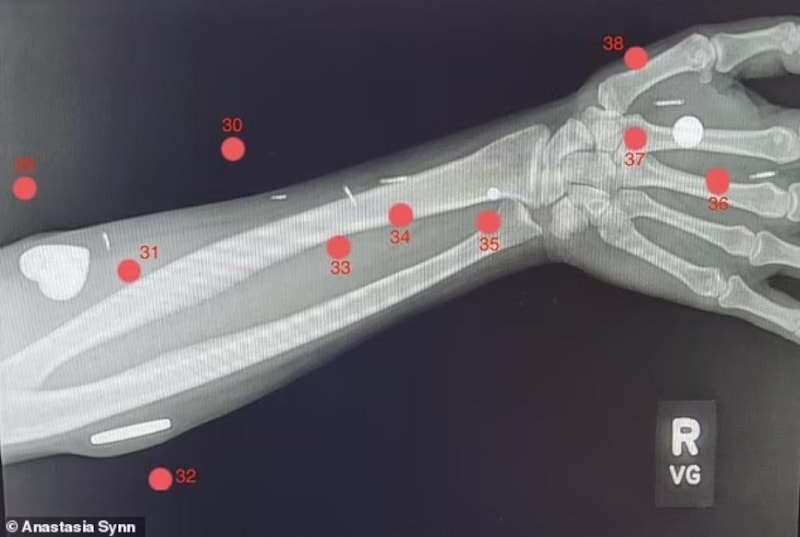 Bu implantlar arasında şimdiye kadar bir insanın içine yerleştirilen en büyük mıknatıs da dahil olmak üzere, kadının vücudunda tam 52 adet çip var.