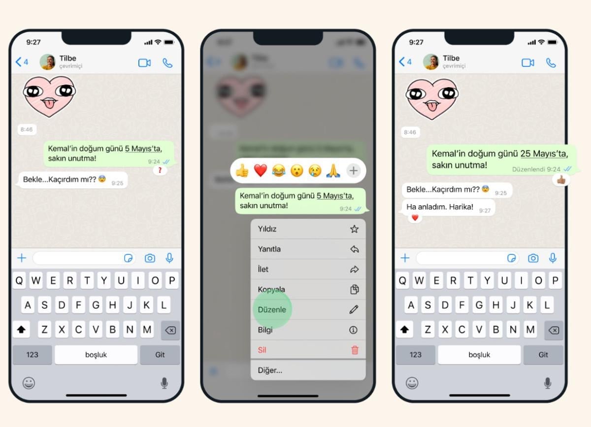 Düzenlenen mesajların altında “Düzenlendi” ibaresine yer veriliyor. Ancak düzenlenen mesajların önceki hali görülemiyor.