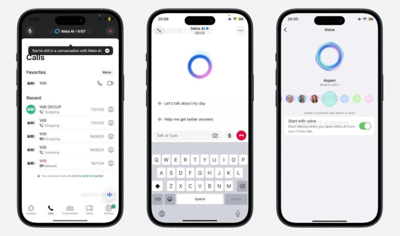 Hızlı erişim için "Aramalar" sekmesine özel bir Meta AI ses simgesi eklenecek ve bu simgeye dokunulduğunda doğrudan sesli görüşme başlayacak.