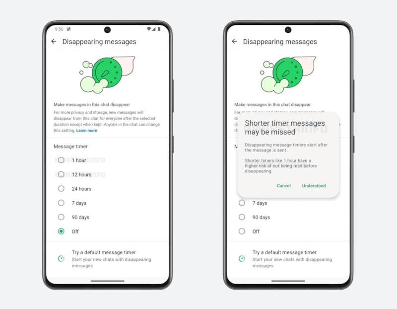 WhatsApp, Android beta sürümünde test etmeye başladığı yeni özellikle kaybolan mesajlar için 1 saat ve 12 saat gibi daha kısa süreler sunmaya hazırlanıyor.