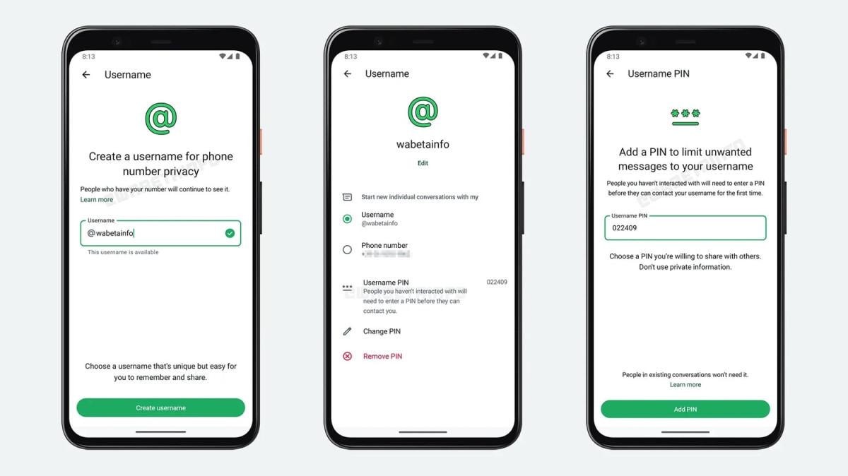 Yeni WhatsApp beta sürümü, kullanıcıların kullanıcı adı ayarlarken spam ve istenmeyen etkileşimleri sınırlamak için PIN ayarlamalarına da izin verecek.