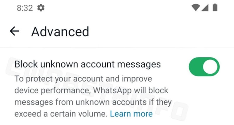 Android için WhatsApp beta 2.24.17.24 güncellemesinde keşfedilen yeni özellik, bilinmeyen hesaplardan gelen mesajları otomatik olarak engelleyecek.
