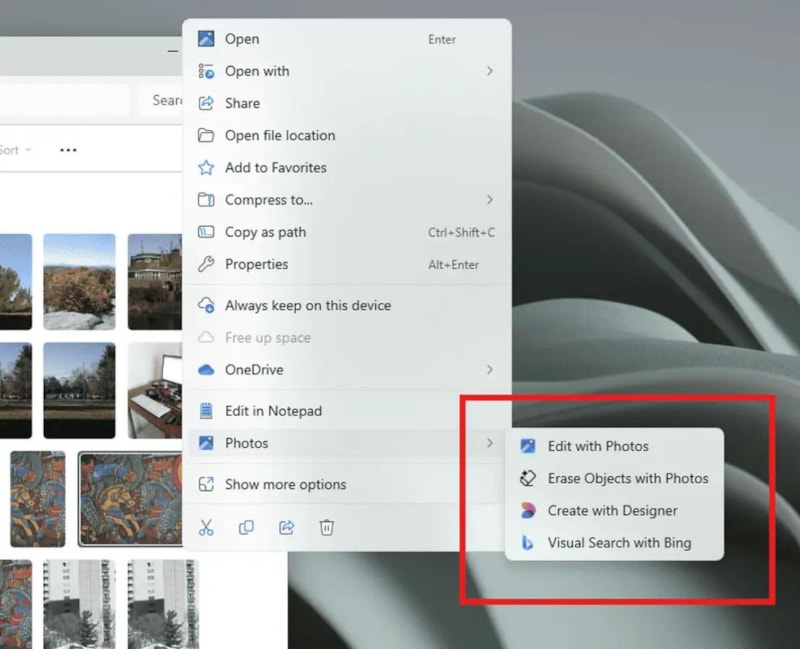 Dosya Gezgini ve masaüstünde yer alan yeni kısayollar sayesinde, kullanıcılar fotoğraflarını açmadan doğrudan yapay zeka destekli düzenleme ve görsel arama işlemlerine erişebilecekler.