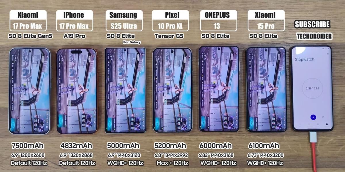 Test sonuçlarına göre Xiaomi 17 Pro Max, 13 saat 36 dakikalık ekran süresiyle listenin zirvesinde yer aldı.