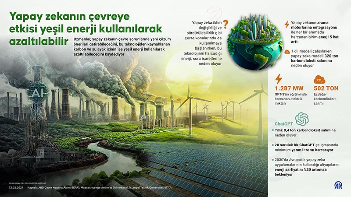 Mutlu, yapay zekanın üretimi ve kullanımı esnasında harcanan enerjinin çevre kirliliğine neden olmaması için alternatif enerji kaynaklarından faydalanılması gerektiğinin altını çizerek, "Aslında yeşil, temiz ve yenilenebilir enerjiyle bu bilişim teknolojilerinin sarfiyatlarını karşıladığımızda hem karbon ayak izi hem de doğrudan su ayak izi azalıyor." diye konuştu.