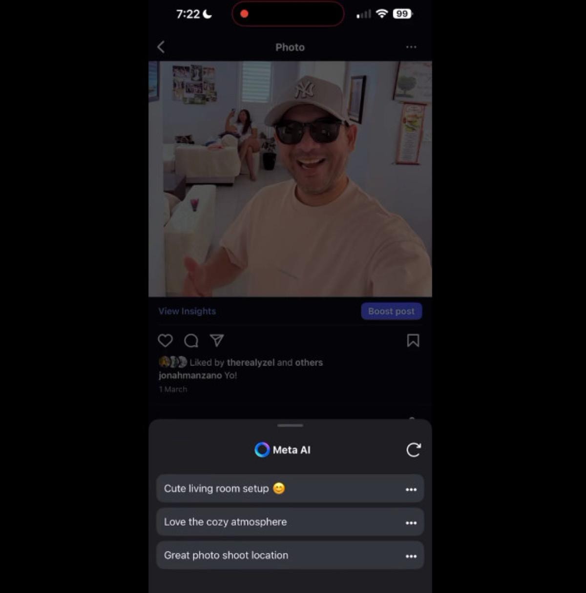 Bu simgeye dokunduklarında, Meta AI fotoğrafı analiz ederek üç farklı yorum önerisi sunacak. Kullanıcılar, bu öneriler arasından seçim yapabilecek veya yeni öneriler talep edebilecekler.