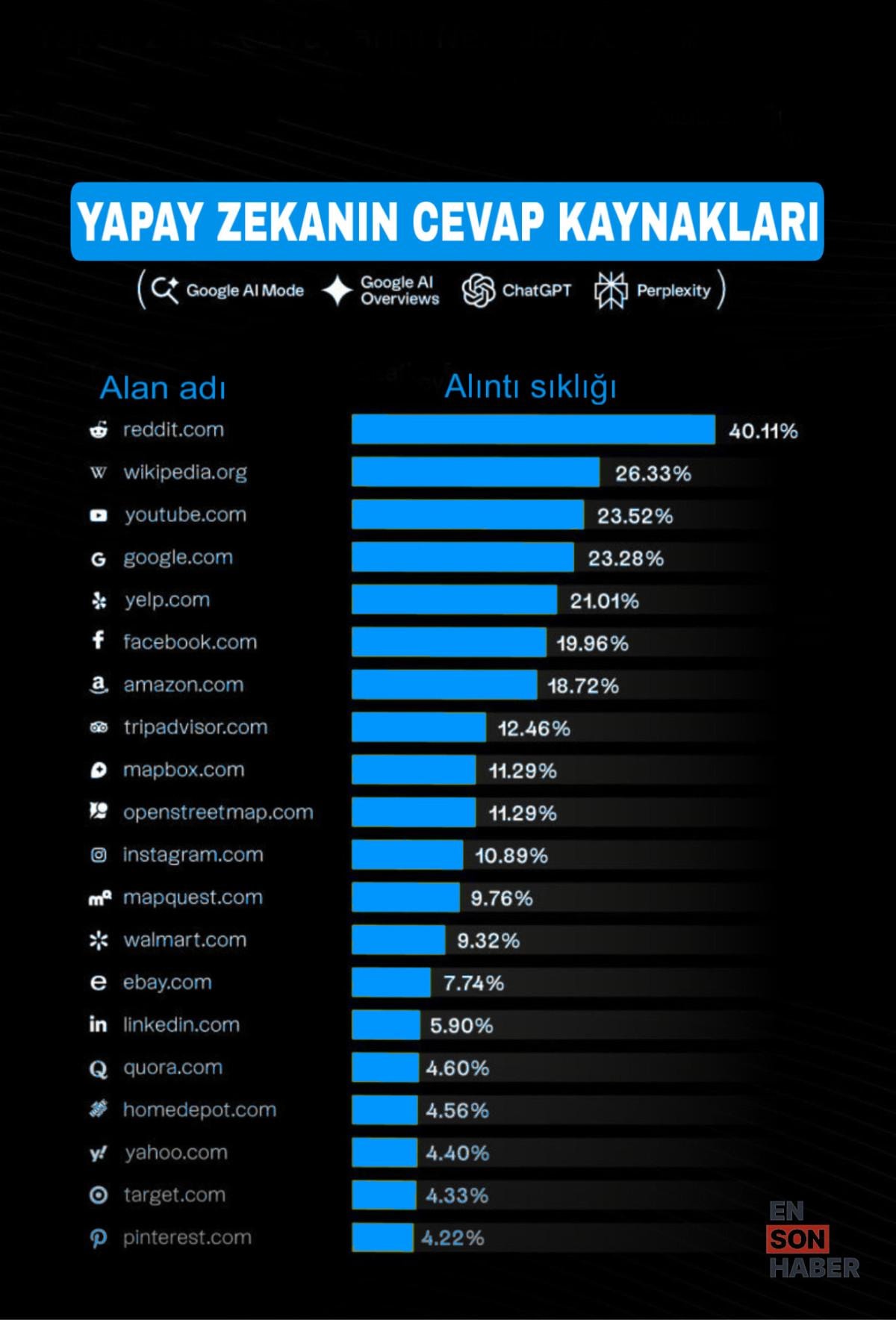 - Reddit gibi platformlar ve Vikipedi, yapay zekanın dil öğrenmesi ve olgusal bilgi kazanmasında kritik rol oynar.