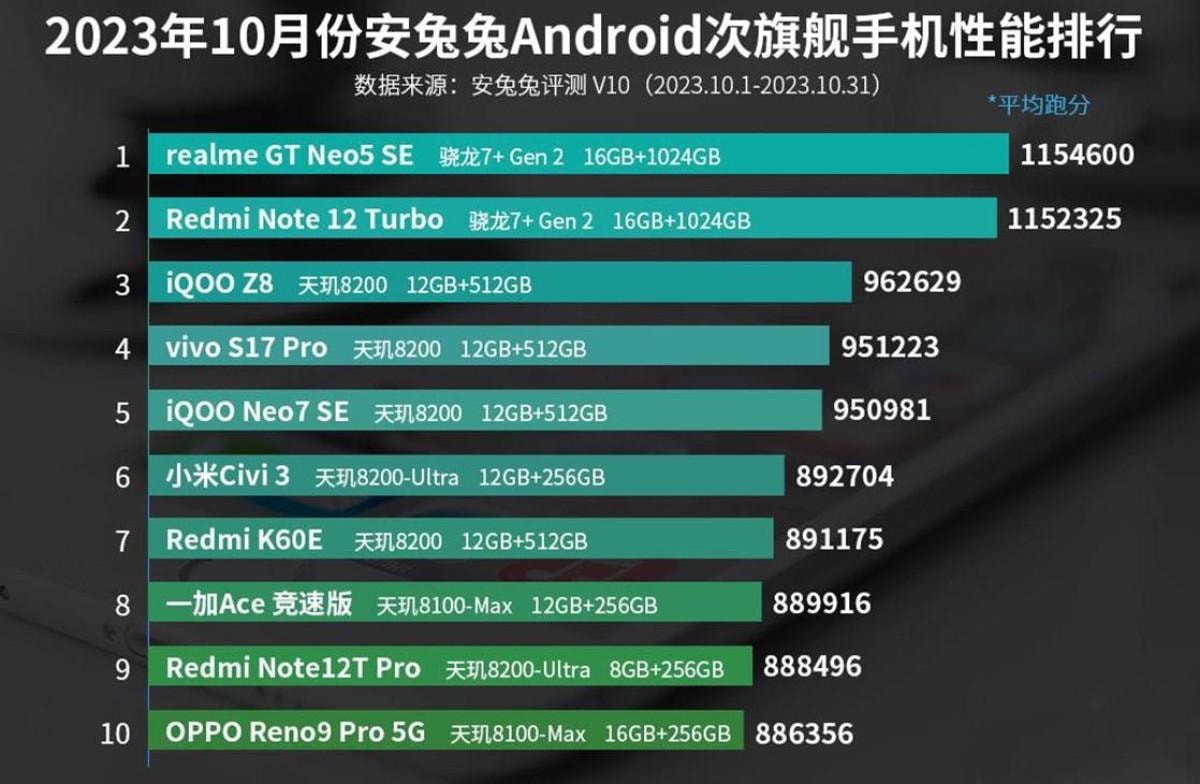 Eylül ayının en güçlü Android telefonu OnePlus Ace 2 Pro, ekim ayında üçüncü sıraya geriledi. İşte ekim ayının en iyi 10 Android telefonu:
