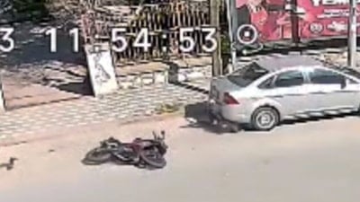 Akhisar ilçesinde U dönüşü yapmak isteyen otomobilin motosiklete çarpması sonrası motosiklet ve sürücüsü metrelerce savrularak park halindeki aracın altına girdi. Kazada motosiklet sürücüsü yaralanırken kaza anı güvenlik kameraları tarafından saniye saniye kaydedildi.