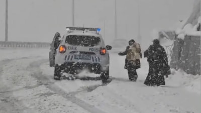 Yoğun kar yağışının etkilediği Hakkari'de yolda kalan kadın ve bebeği, trafik polislerinin hızlı müdahalesiyle kurtuldu. O anlar sosyal medyada paylaşılırken anne ve bebeği, ekiplerce güvenli bir noktaya ulaştırıldı.