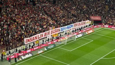 Galatasaray taraftarı, Kocaelispor maçında kale arkasında "İnsanlık bir olsun Siyonizm yok olsun" yazılı pankart açtı.
