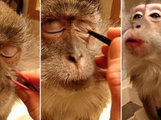 Amerikalı kız maymununa makyaj yaptı -İZLE