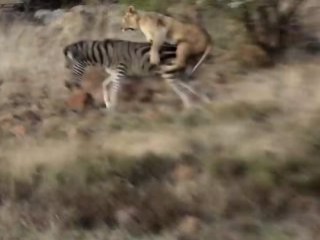Aslanın saldırısı karşısında çaresiz kalan zebra, tüm çabalarına rağmen av olmaktan kurtulamadı.