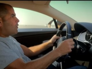 Chiron'un hız sınırlarını test eden Harris'in 30 saniye içinde 0'dan 380 km'ye çıkan otomobildeki heyacanı kameralara yansıyor.