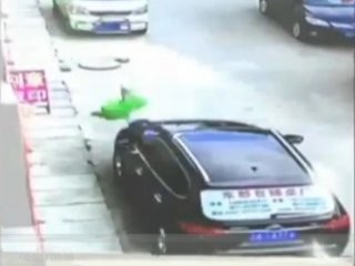 Çin'de 3. yaşındaki erkek çocuk 3. kattan düştü. Park halindeki otomobile çarptı.