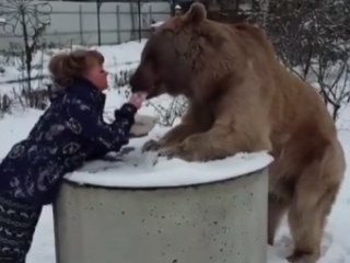 Son olarak kaydedilen görüntülerde, küçük bir çocuk dev bir ayıya elleriyle yemek yediriyor. Ayıyı korkusuzca seven küçük çocuk, vahşi ayıyı öpmeyi de ihmal etmiyor.