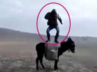 Bir eşeğin üzerinde oyun havası oynayan çoban sosyal medyada hayvanseverlerin tepkisine neden oldu. Nerede çekildiği belli olmayan görüntülerde çoban olduğu tahmin edilen bir kişi, eşeğin üzerine çıkarak oyun havası oynuyor.