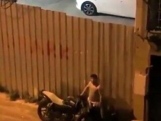 Gece kimsenin olmadığını düşünen hırsız, park halinde kilitli bulunan motosikletin yanına gelerek, çalmak için uğraştı. Tam bu sırada evinin penceresinde bulunan bir kişi, o anları cep telefonuna kaydetmeye başladı.