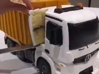Görüntülerdeki kamyon şeklindeki pasta, hem uzaktan kumandayla hareket ettirilebiliyor hem de yenebiliyor.