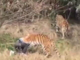 Bu sırada harekete geçen kaplanlar, fotoğraf çekmek isteyen adama saldırdı.