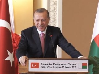 Cumhurbaşkanı Recep Tayyip Erdoğan Madagaskar'da yaptığı ortak basın toplantısında Madagaskar Cumhurbaşkanı Hery Rajaonarimampianina'nın adını telaffuz ederken bir hayli zorlanması ortaya komik görüntülerin çıkmasına neden oldu.
