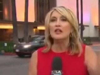 KTLA 5 kanalı muhabiri Wendy Burch'un canlı yayın esnasında deyim yerindeyse aklı başından gitti. Sunucu merkezle bağlantı yaptığı sırada arkasına bir adam yaklaştı. Burch birden arkasına döndü ve olanlar oldu.