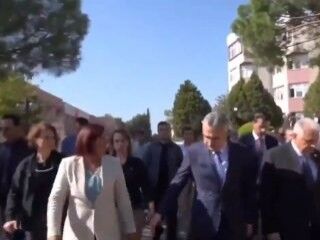 AK Parti Aydın Milletvekili Mustafa Savaş, Aydın'da bulunan Binali Yıldırım'ın yanında yürüyebilmek için arka taraftan gelip, Aydın Büyükşehir Belediye Başkanı Özlem Çerçioğlu'nu ittirdi.