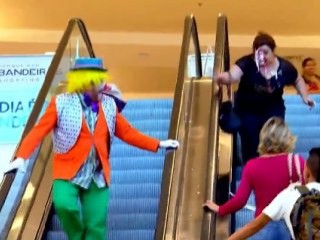 Portekiz'de kaydedilen görüntülerde, şakacı palyaço kurbanını yürüyen merdivende seçti.