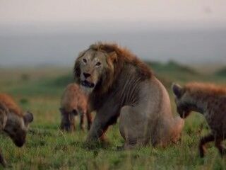 BBC'nin belgeselindeki aslan sırtlanların saldırısına uğruyor. Sırtlan sürüsüyle tek başına mücadele eden aslan yardımına koşan diğer aslan sayesinde kurtuluyor.