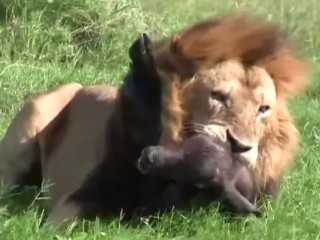 Afrika'da sürüden ayrılan yavru bufalo bir ağacın altında beklemeye başladı. Kameraların kayıtta olduğu anlarda yavru bufaloyu göre erkek aslan, avına yavaş yavaş yaklaştı.