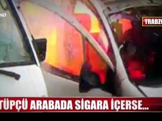 Trabzon'da bir tüp bayisinde çalışan 34 yaşındaki genç adam, sabah işe gitmek için bindiği aracında sigara yaktı.