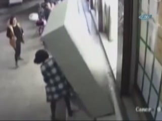 Çin'de bir marketten atılan soyunma odası, bir kadınla çocuğunun üzerine devrildi.