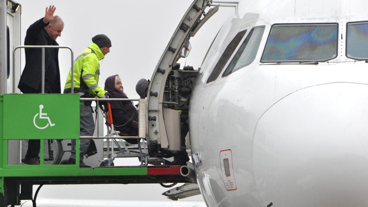 Tekerlekli sandalye ile uçağa bindirilen Hayriye Nine, uçakla İstanbul’a havalandı.