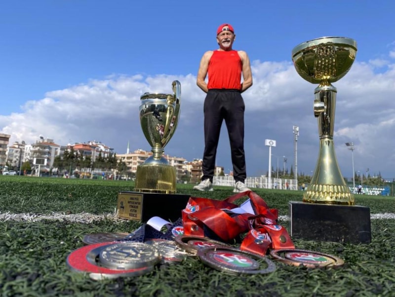 İzmir’de yaşayan 63 yaşındaki Murat Sağlam, geçirdiği 10’a yakın ameliyattan sonra doktorlarının koşamazsın demesine rağmen madalyalar kazanarak Türkiye şampiyonu oldu.