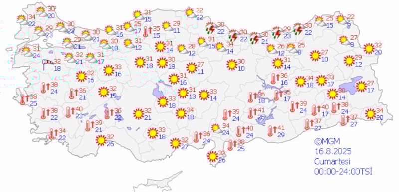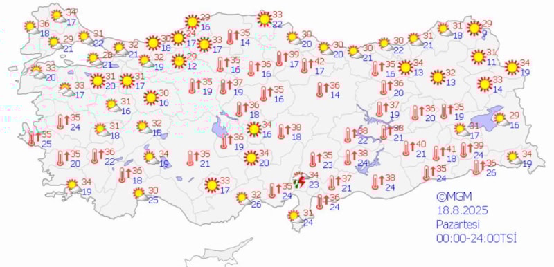 - Antalya 38 derece.