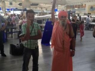 Hinduizm inanışının tanrılarından Şiva'ya adak adadığını söyleyen Kapilakham Namah , 11 yıldır indirmediği kolu ve tırnaklarıyla havalimanında ilginç görüntüler oluşturdu.