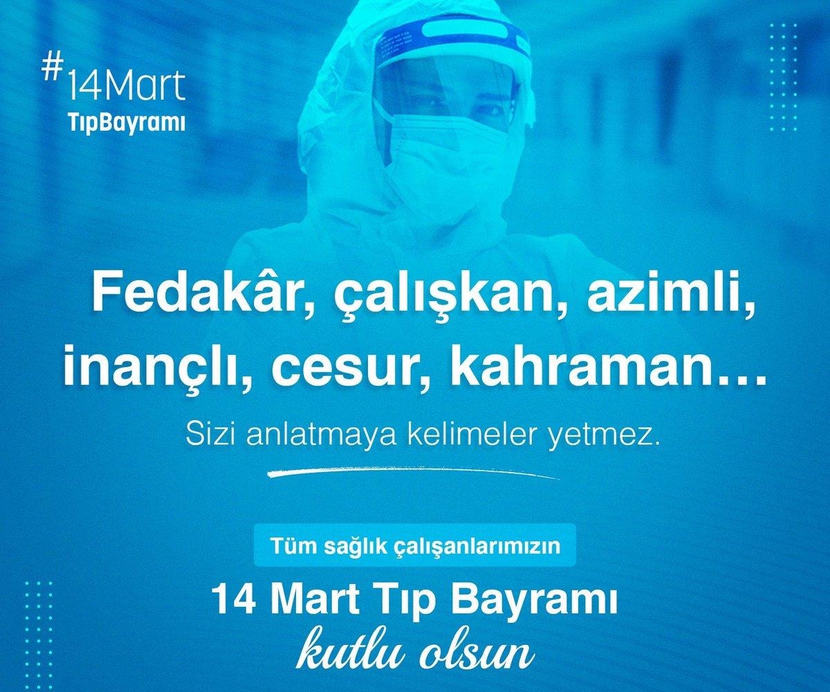 Büyük bir fedakârlıkla çalışan başta hekimlerimiz olmak üzere tüm sağlık çalışanlarının 14 Mart Tıp Bayramı kutlu olsun. İyi ki varsınız