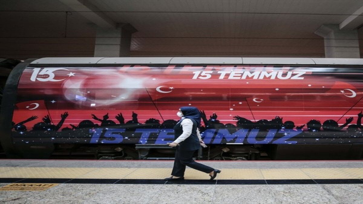 Demokrasi ve Milli Birlik Günü dolayısıyla TCDD Taşımacılık Genel Müdürlüğü tarafından 15 Temmuz görseliyle giydirilmiş tren, Ankara-İstanbul, İstanbul-Konya ve Ankara-Eskişehir hatlarında iki ay sefer yapacak.