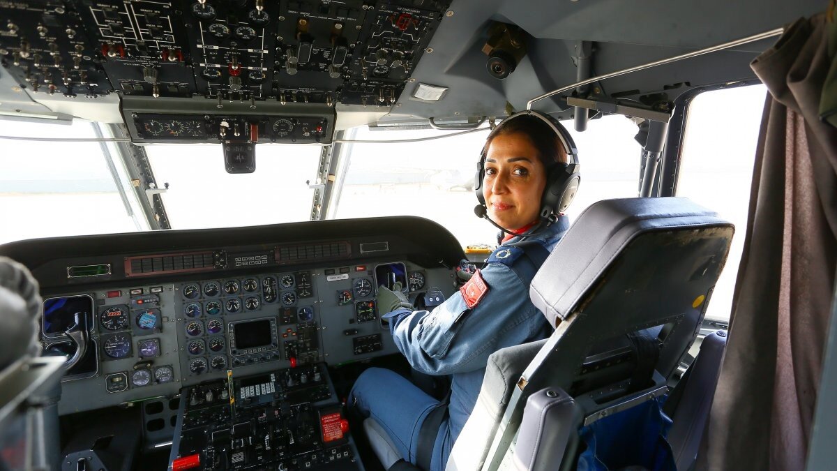 11’inci Hava Ulaştırma Ana Üs Komutanlığı 211’inci Filo’da görev yapan Hava Pilot Yarbay Mesude Küçük, CASA CN-235 tipi orta menzilli hafif askeri kargo uçağını kullanıyor.