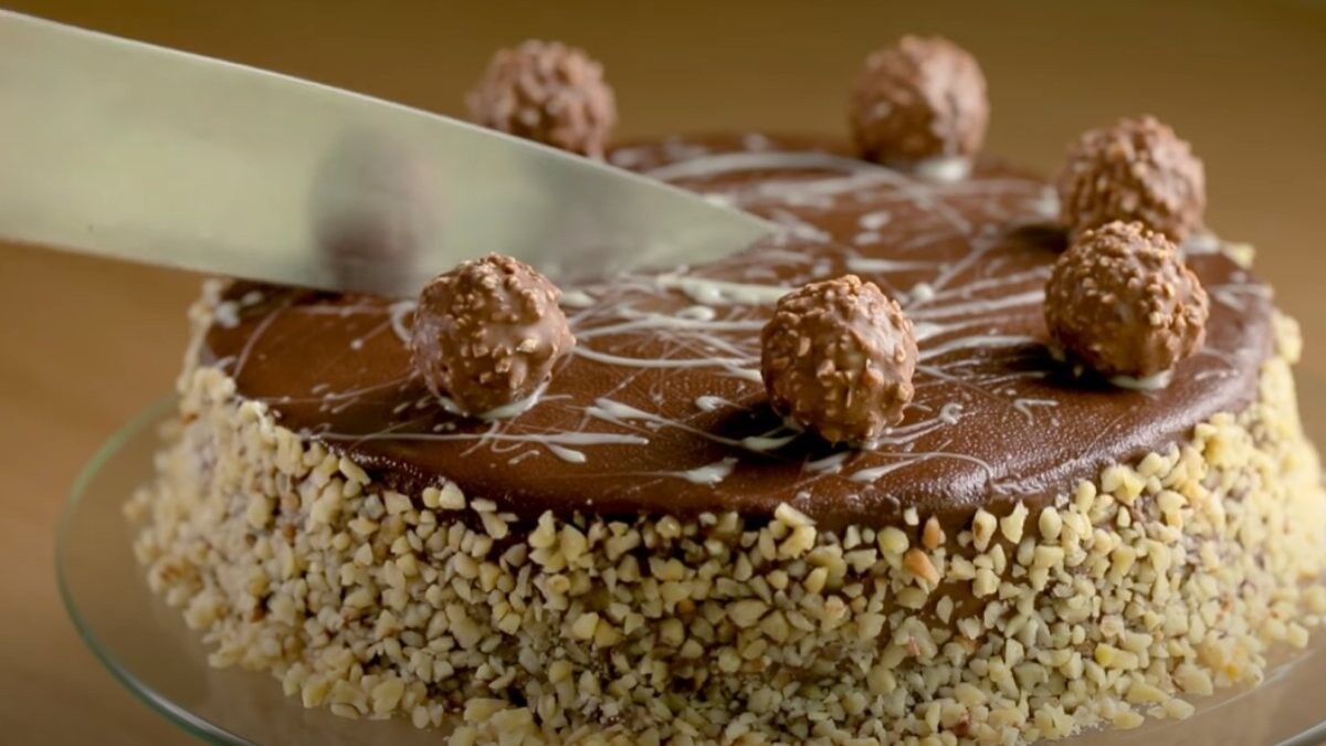 Soğumuş pastanın üzerine hazırladığınız çikolatalı ganajı ilave edin ve kenarları da 1,5 su bardağı pirinç fındık ile bir güzel kaplayın. Son olarak 30 gram eritilmiş beyaz çikolatayı pastanın üzerine dilediğiniz şekilde ekleyin ve dilediğiniz farklı çikolata tipleri ile üzerini süsleyin. Şimdi dilimleyerek servis edebilirsiniz.