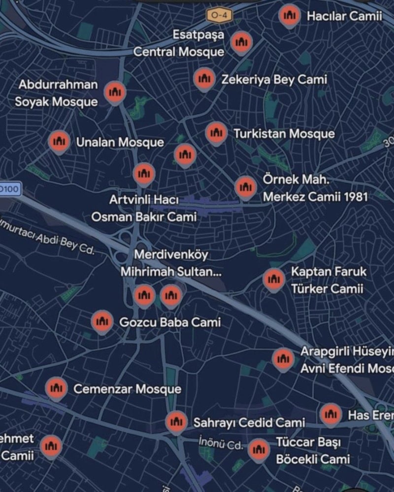 Göztepe-Ünalan-Çamlıca hattına haritadan bakınca, birçok cami karşınıza çıkıyor.