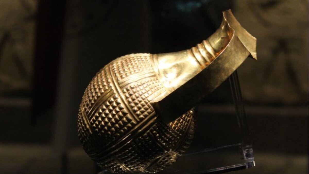 Ankara Anadolu Medeniyetleri Müzesi’nde 4 bin 250 yıllık altın gaga ağızlı testinin İngiltere’den Türkiye’ye iade edilmesi üzerine tören düzenlendi.