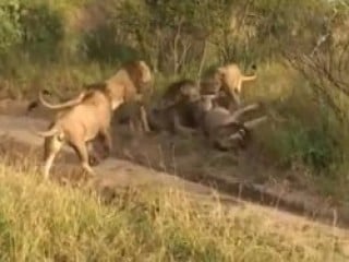 Vahşi doğanın en acımasız avcılarından biri olan aslanlar, kendi aralarındaki üstünlük mücadelesinde de oldukça vahşi olabiliyorlar. Bunun en güzel örneği, 4 genç erkek aslanın yalnız dolaşan yaşlı aslana saldırmaları.