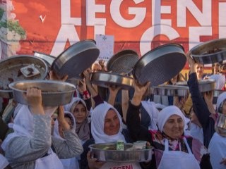 Şanlıurfa'da 400 kadın, aynı anda yöreye özgü lezzetlerden etli çiğ köfte yoğurarak, Dünya Kadınlar Rekoru'nu kırdı.