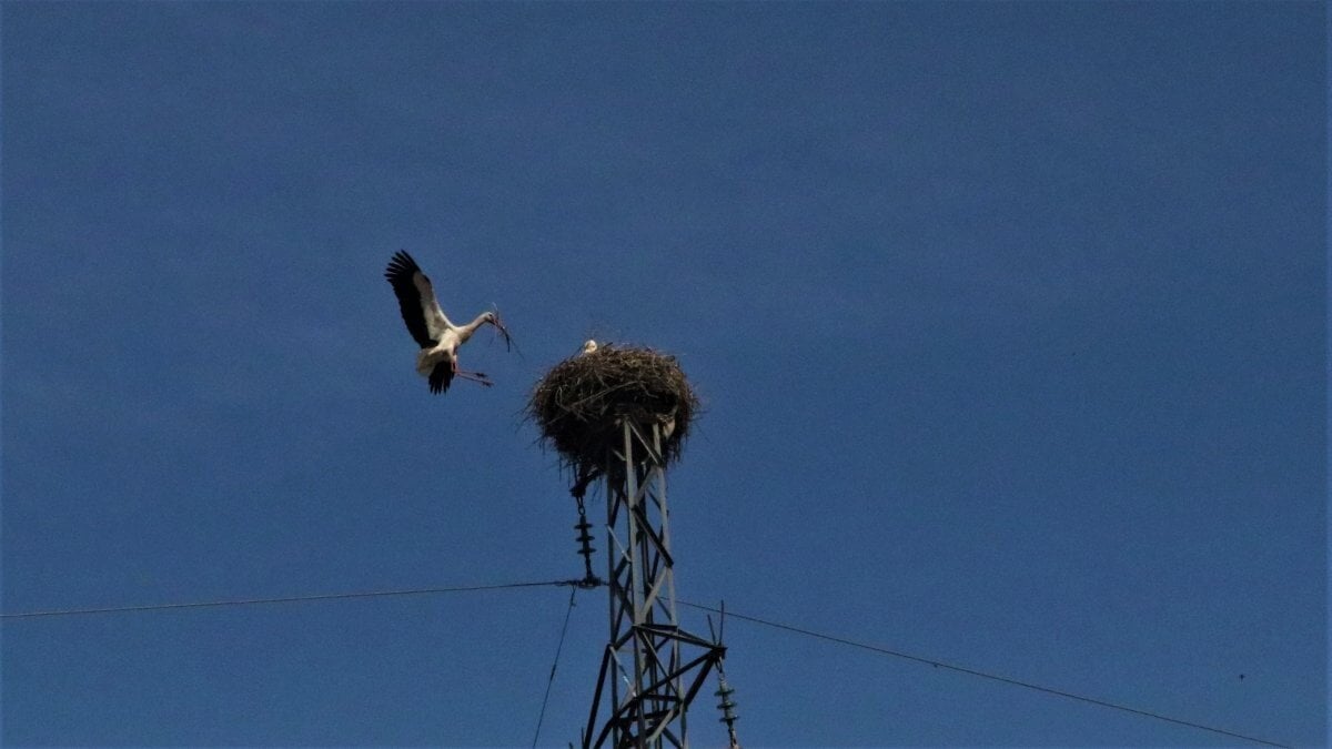 Tarlalardan topladıkları çalı çırpıları elektrik direklerinin üzerindeki yuvalarına mühendis edasıyla yerleştiren leyleklerin, kuluçka dönemi için yaptıkları hazırlıklar görüntülendi.