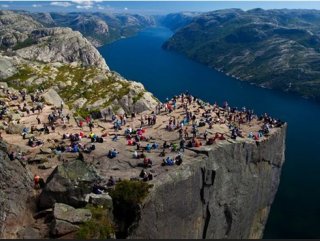 Preikestolen olarak da bilinen Pulpit kayalıkları Norveç'in en popüler yerlerinden biri. Yüksekliği yaklaşık 2000 metre olan bu kayalıklara, hem yürüyüş yapmak için hem de manzarayı izlemek için gidiyorlar.