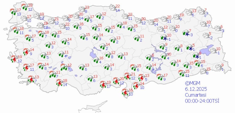 Meteoroloji Genel Müdürlüğü, son hava durumu tahminlerini yayınladı.