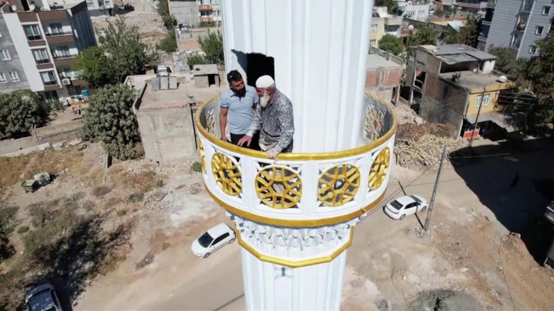 İlerlemiş yaşına rağmen metrelerce yüksekte çalışan Rizeli minare ustası Hasan Yazıcı, Tunceli hariç Türkiye'nin tüm illerinde minare yaptı.